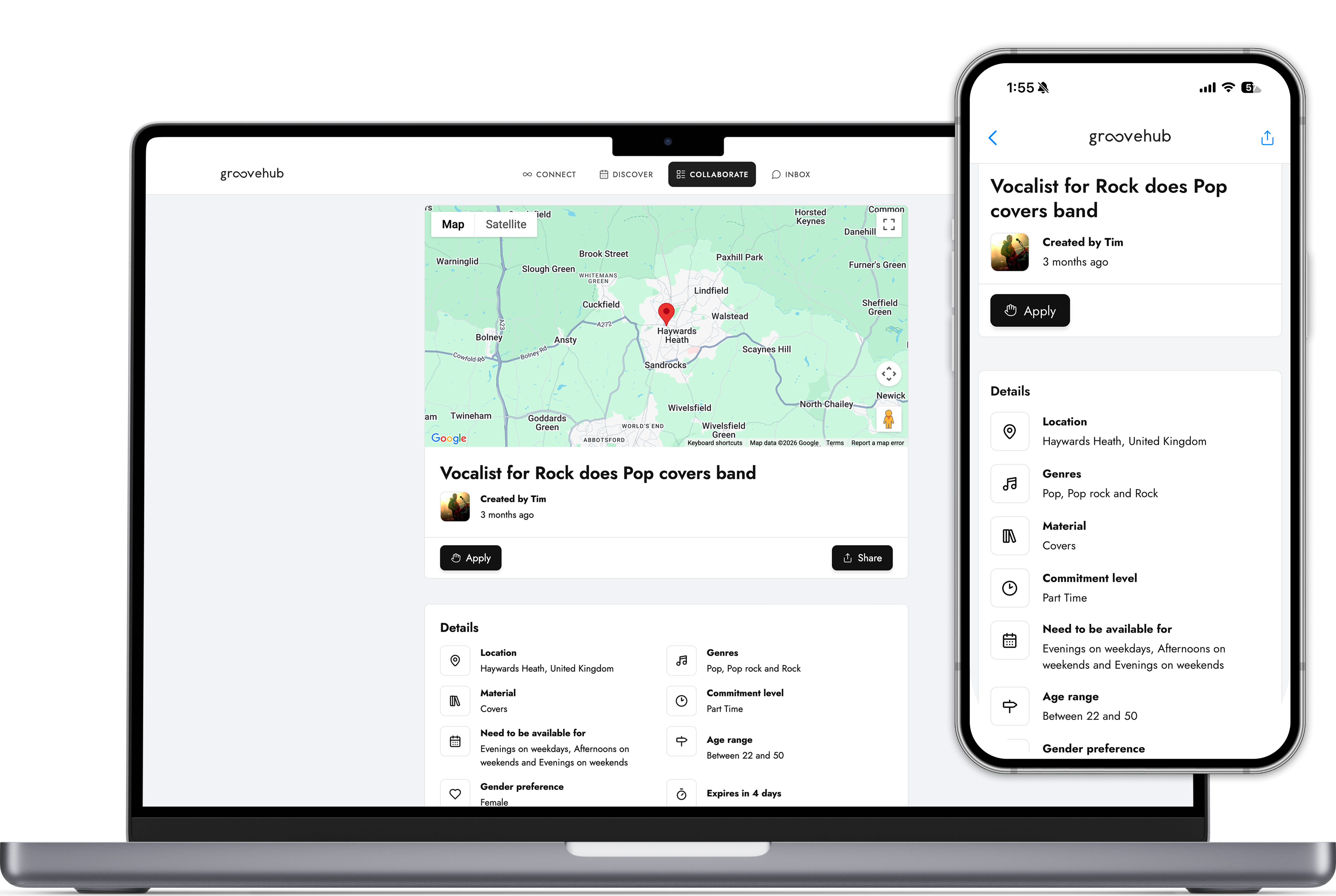 Create a Groovecard™ to showcase your skills and experience as your online Music CV which lets other artists and industry professionals in your city connect and collaborate with you.